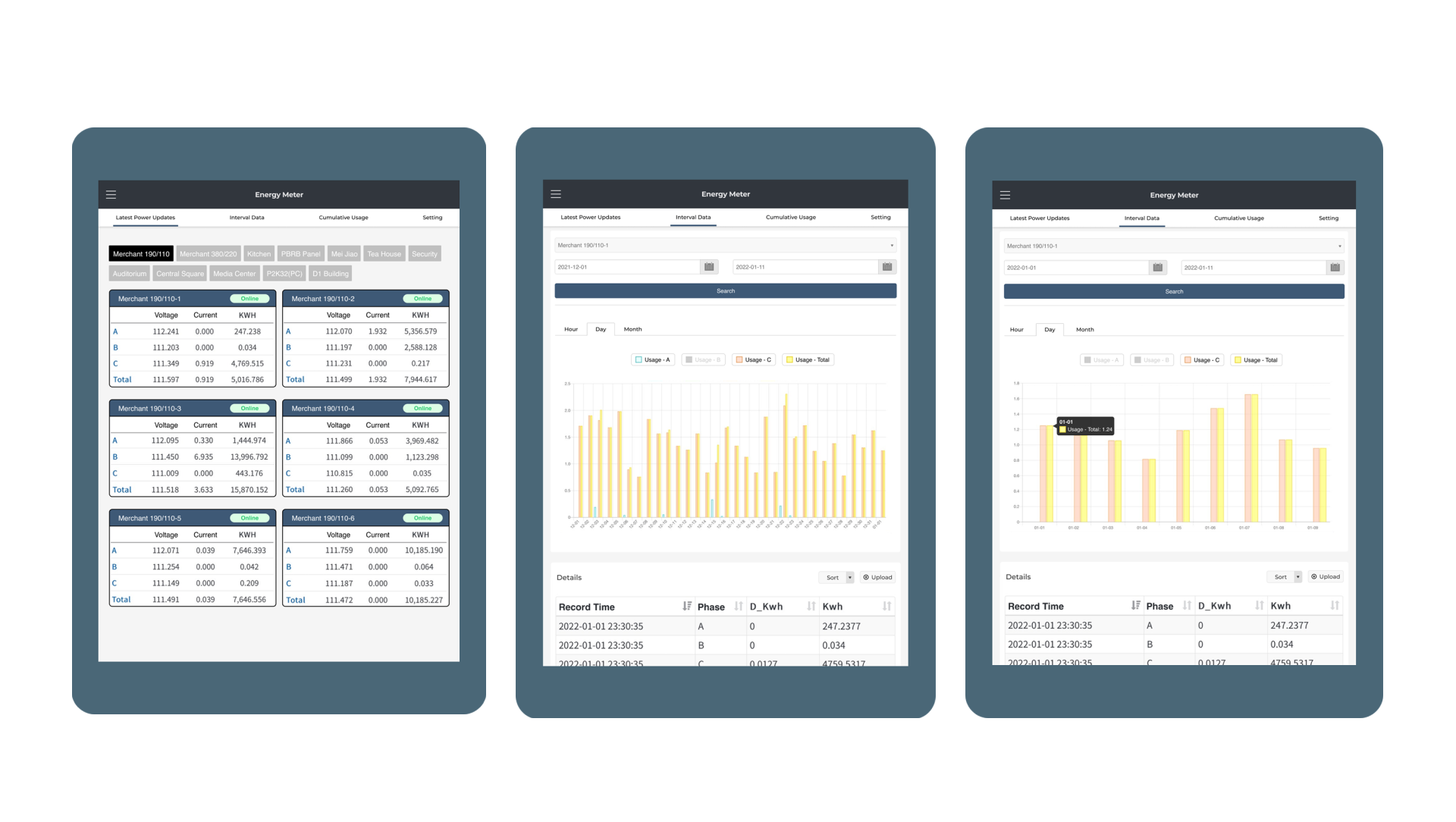 We were able to put the 7 inch tablet display at the merchant area so that merchants and employees can check their power usage instantly without walking all over the theme park.