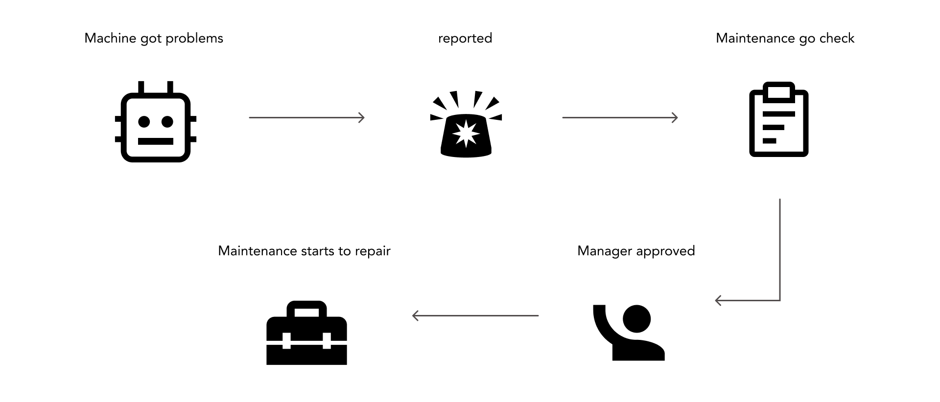 The machines and equipment in the cultural park often take a few days to get reported for repairs. After the maintenance checks the equipment, it then needs to be approved by the manager to start the maintenance progress.