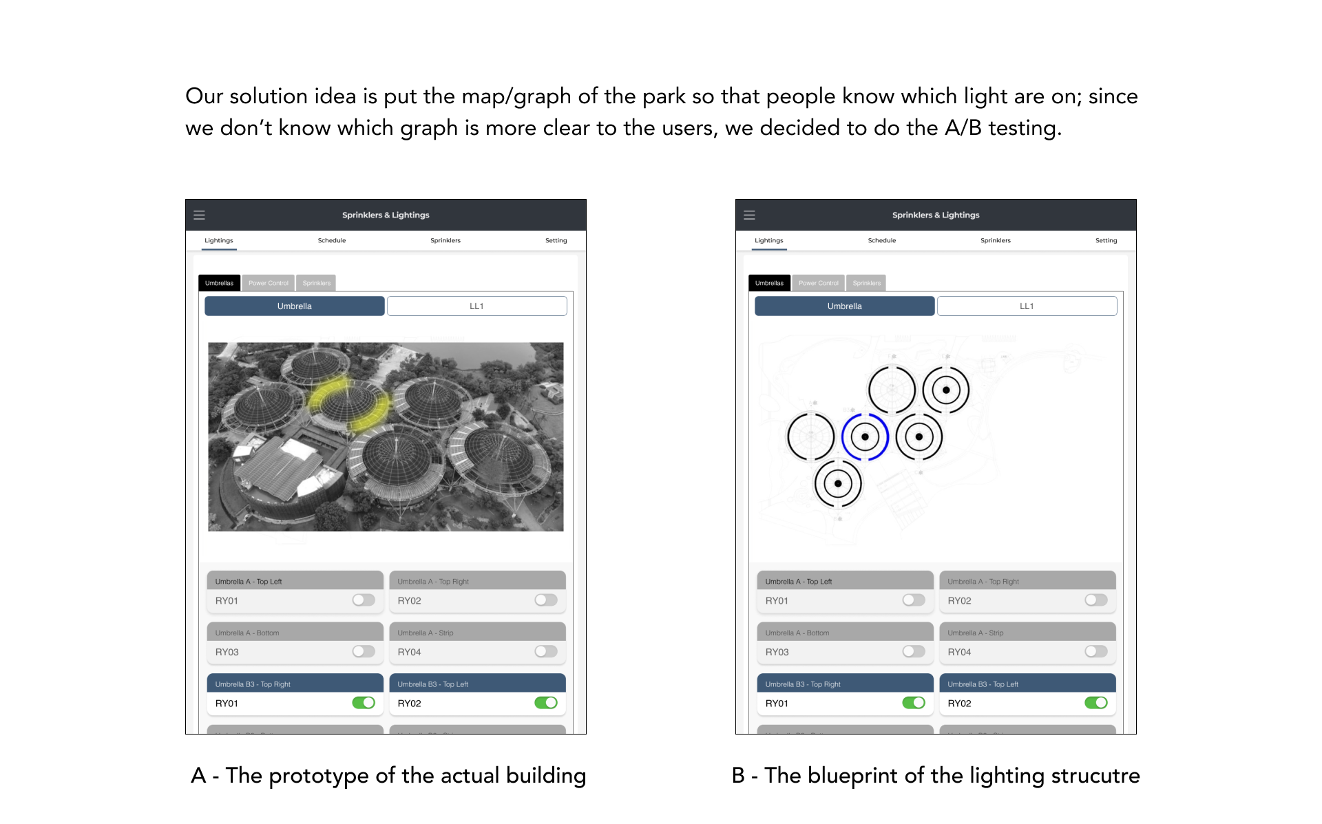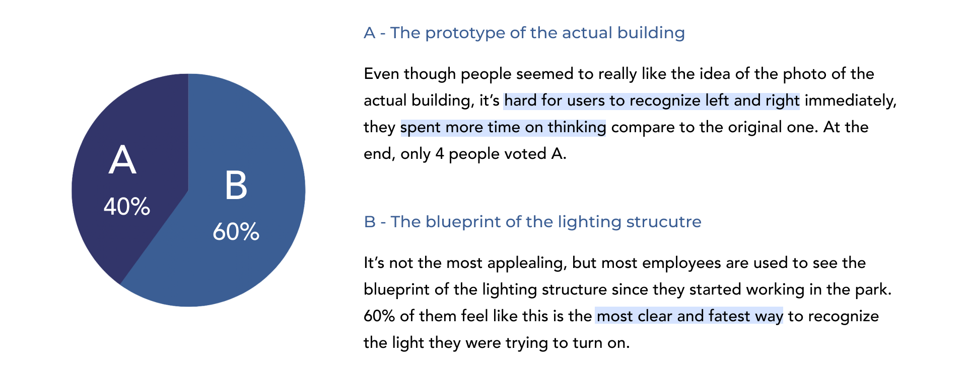 We decided to go for option B since it's the most intuitive option for users based on the testing result. We then applied the same design layout on other pages.
